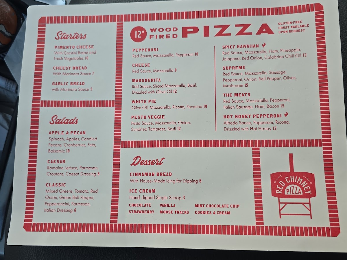 Start your meal with crave-worthy starters such as Pimento Cheese with crostini or warm garlic bread paired with marinara. Don’t miss dessert—house-made cinnamon bread with icing or a hand-dipped ice cream scoop rounds out the perfect flavorful journey. Highly praised for a light crust and attentive service, Red Chimney Pizza is a must-visit spot merging quality ingredients with a welcoming atmosphere.
